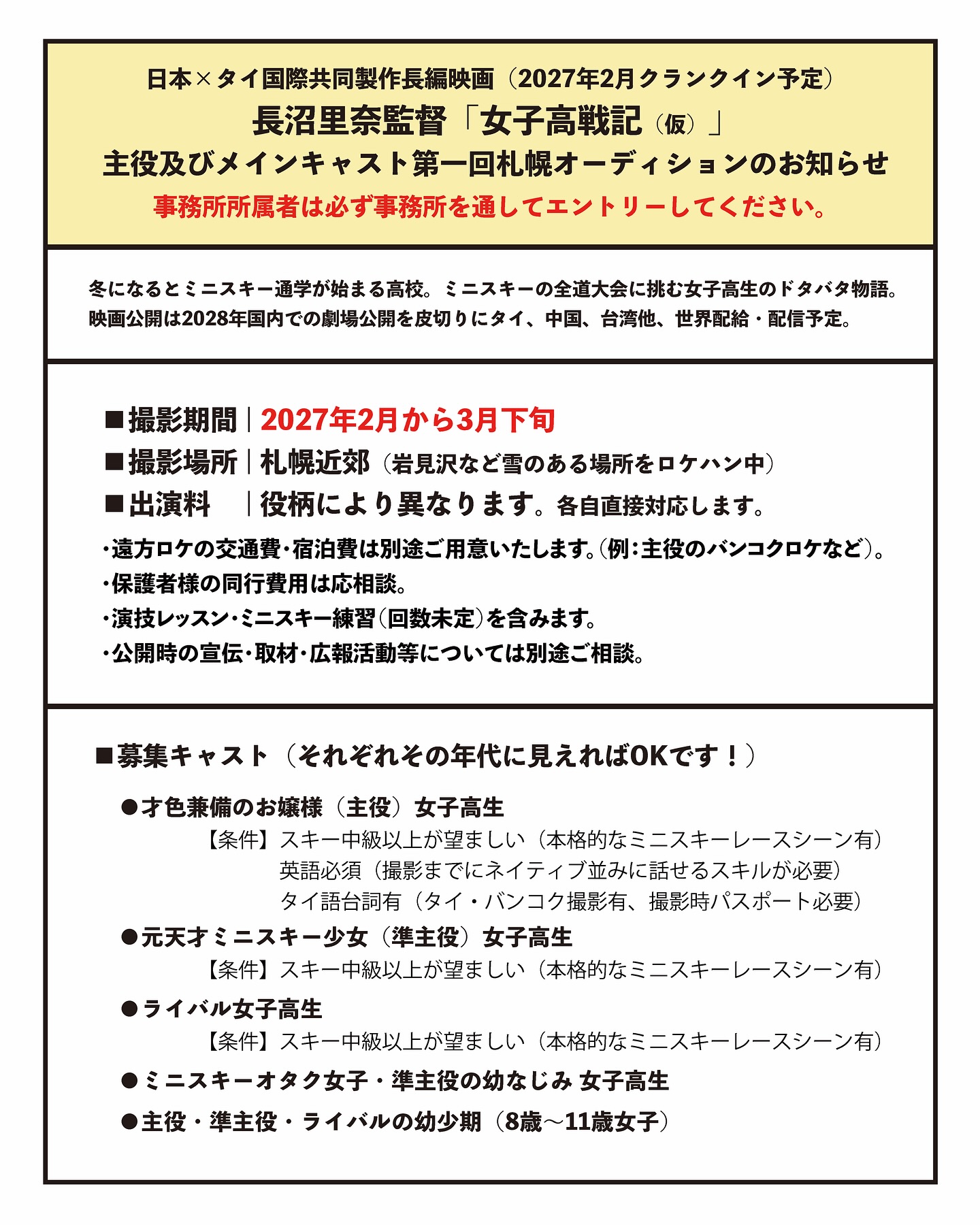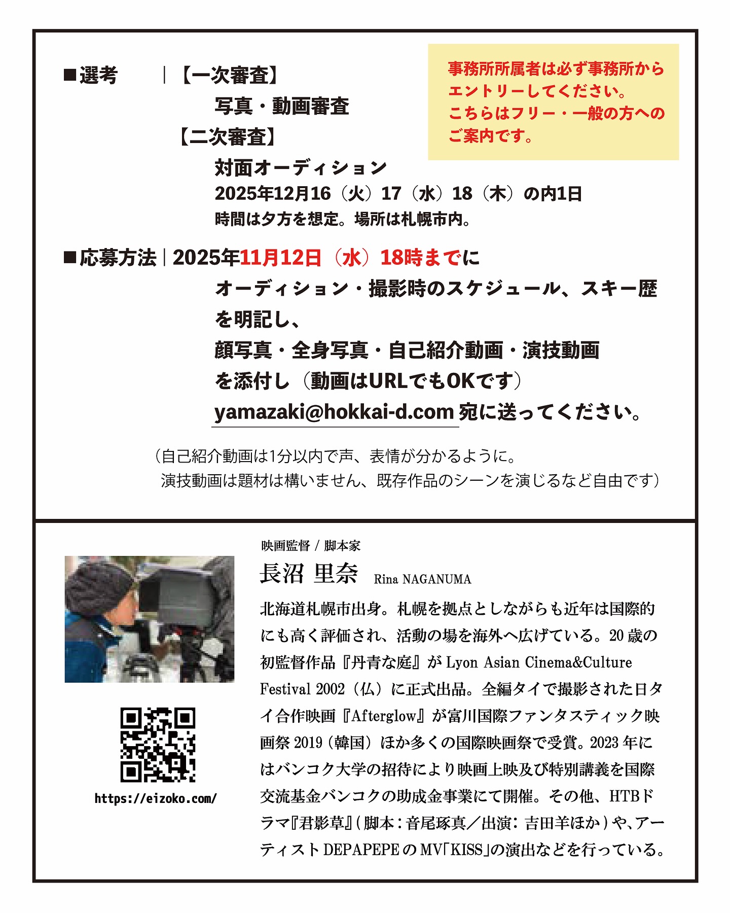 M&E, 82 minutes reedited film with E-sub x 1 episode (2017) 23 minutes x 3 episodes (2016) available for broadcasting Screenplay & Directed by Rina Naganuma Produced by HTB Hokkaido Television Broadcasting PIC : Shun Hashiya